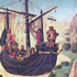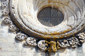Por baixo do óculo está a figura mais enigmática de toda a fachada. Representa uma Harpia, figura fantástica, com cabeça humana e corpo de ave. Foto 1 Estes seres surgem na lenda do Velo ou Tosão de Ouro, um episódio da mitologia grega, já contado no século VIII a. C.. Vamos conhecer alguns pormenores da lenda. Foto 2, Foto 3, Foto 4, Foto 5, Foto 6 Mas que ligação tem com a fachada poente esta antiquíssima história, contando as aventuras dos argonautas, os primeiros navegadores europeus? Vamos ver a Harpia mais de perto. Foto 7, Foto 8, Foto 9, Foto 10, Foto 11, Foto 12, Foto 13, Foto 14 Não foi apenas Diogo de Arruda, na fachada poente, que contou a história dos argonautas, o tema foi continuado por outros artistas, noutras partes da igreja. Na nova entrada do templo, João de Castilho representa dois argonautas. Foto 15, Foto 16, Foto 17, Foto 18 No interior, na abóbada da Charola, foi pintado um argonauta segurando a esfera armilar, o emblema pessoal do rei. Foto 19, Foto 20, Foto 21, Foto 22, Foto 23 Todas estas referências à procura do Velo de Ouro, apesar de serem obra de artistas diferentes, em variados pontos do templo, foram mandadas executar por D. Manuel. Isto mostra bem a intenção do rei em identificar a nova igreja com o Argo, o barco que conseguiu chegar ao impossível. |